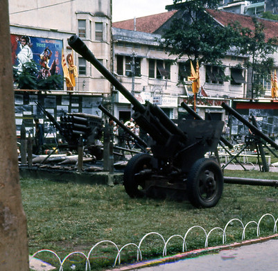 After a successful battle in which North VietNamese weapons and tanks were captured, the weapons were put on display for the public in the center of Saigon.