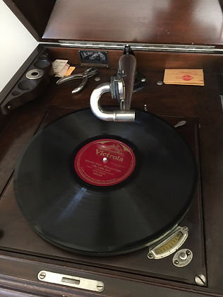 Pictured here are the family heirlooms I inherited - the Victrola and the Secretary with the Harvard Classics.